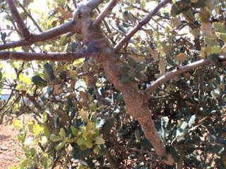 Vigilad con las enfermedades y los tumores como el de la fotografía, posiblemente provocados por un fitoplasma y esterilizad las tijeras de podar, por ejemplo en alcohol, entre árbol y árbol.