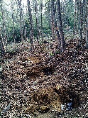 Otro de estos proyectos es la introducción de Tuber melanosporum y Tuber uncinatum en bosques nativos de Nothofagus sp. En concreto se ha inoculado un bosque de Nothofagus glauca, que en Chile llaman popularmente “roble”, de unos 20 años de edad. Previa a la inoculación, el bosque se raleó, quitando más de la mitad de los pies para permitir la entrada de luz necesaria a la trufa. En este caso la mayor parte del suelo es calizo, con texturas francas, aunque a modo experimental se contempla subir el pH esparciendo caliza en polvo en algunas zonas.